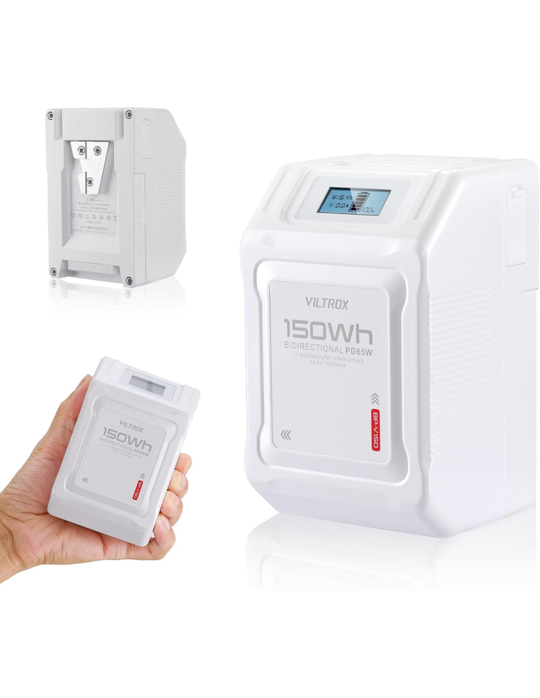 V-Lock to bateria o dużej pojemności 10050 mAh z 9 obwodami zabezpieczającymi, takimi jak ochrona nadprądowa, ochrona przed nadmiernym rozładowaniem, ochrona przed nadmiernym zasilaniem, ochrona przed odzyskiwaniem i ochrona EMF. Mini V Lock Battery jest wykonana z wysokiej jakości ognioodpornego ABS i matowej obudowy PC, aby zapewnić dobre wyczucie dłoni i trwałość