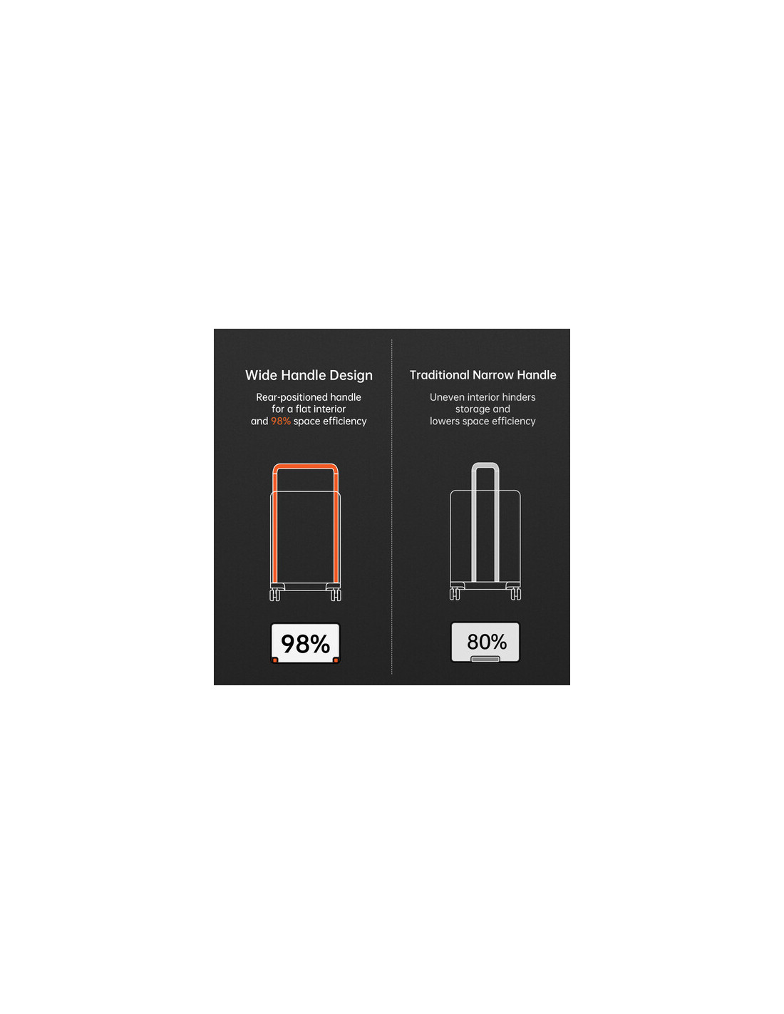 Innowacyjny szeroki uchwyt teleskopowy pozwala na osiągnięcie 98% wydajności przestrzennej w porównaniu do tradycyjnych uchwytów. Dzięki temu wnętrze plecaka pozostaje płaskie i łatwe do organizacji, co jest niezwykle istotne dla osób przewożących sprzęt o różnych kształtach.
